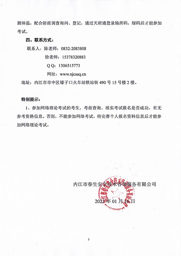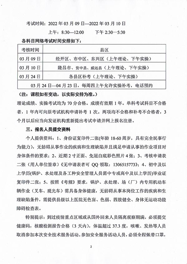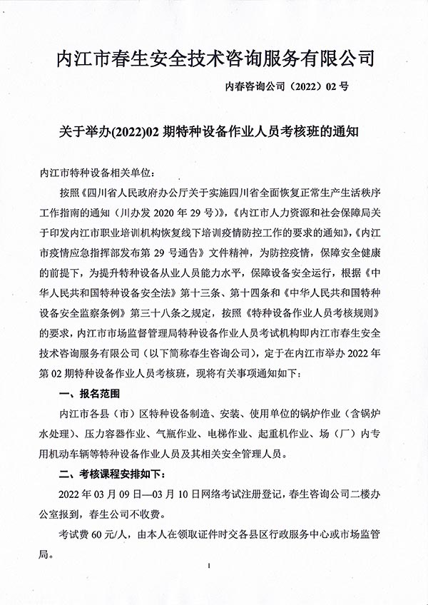 2022年春生公司02期特種設備作業(yè)人員考核時間安排