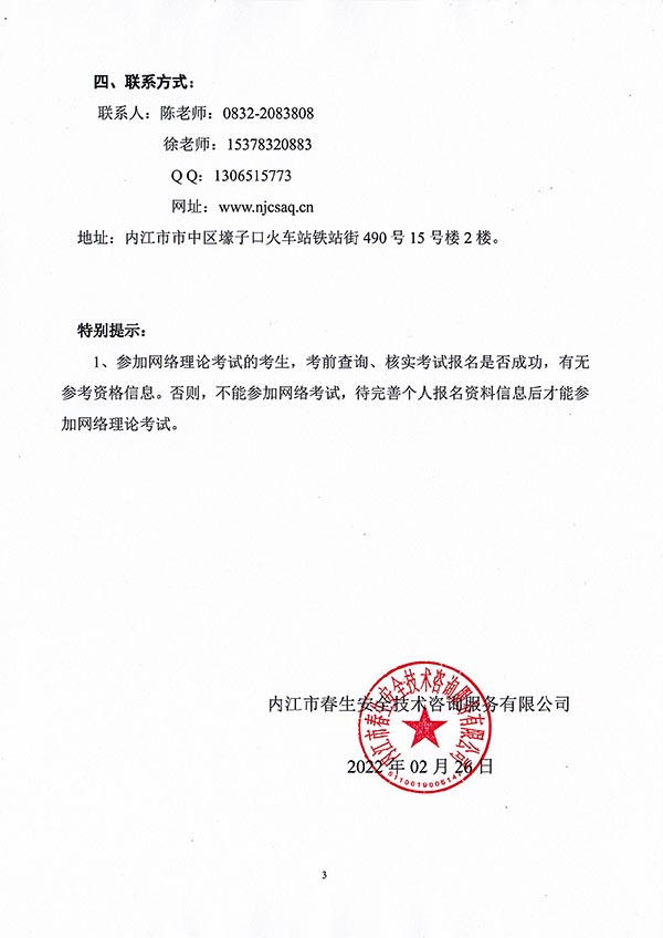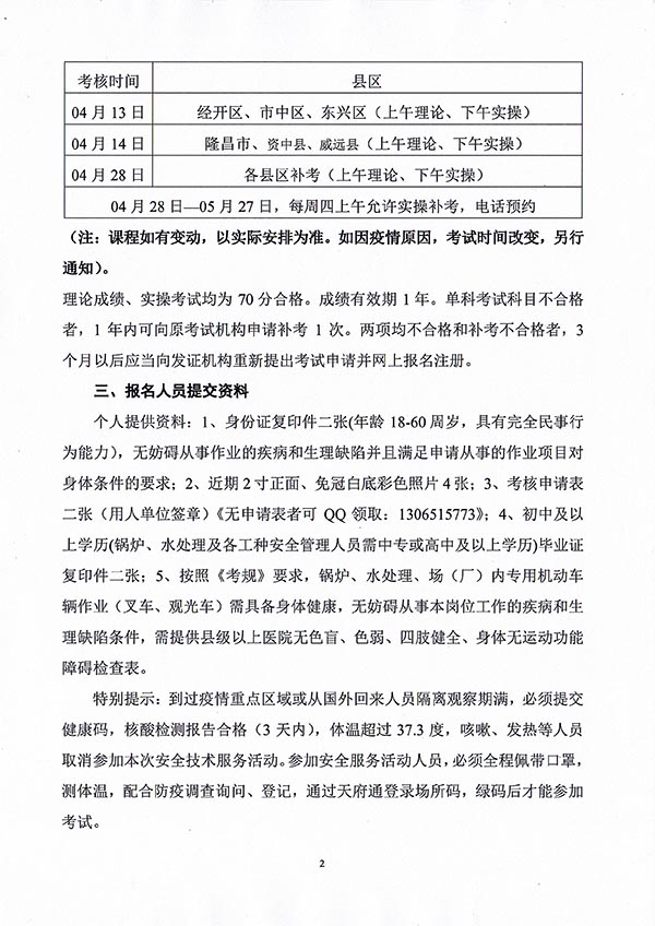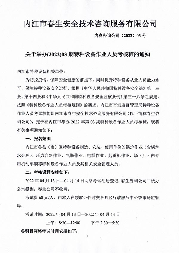 2022年春生公司03期特種設備作業(yè)人員考核時間安排