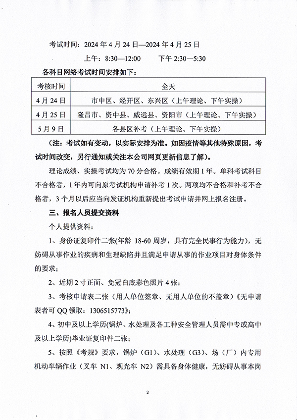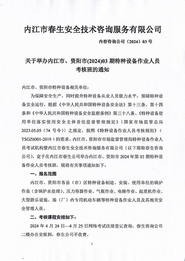 關于舉辦內(nèi)江市、資陽市(2024)03期特種設備作業(yè)人員考核班的通