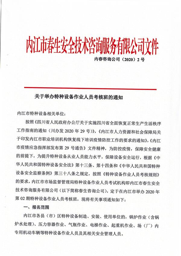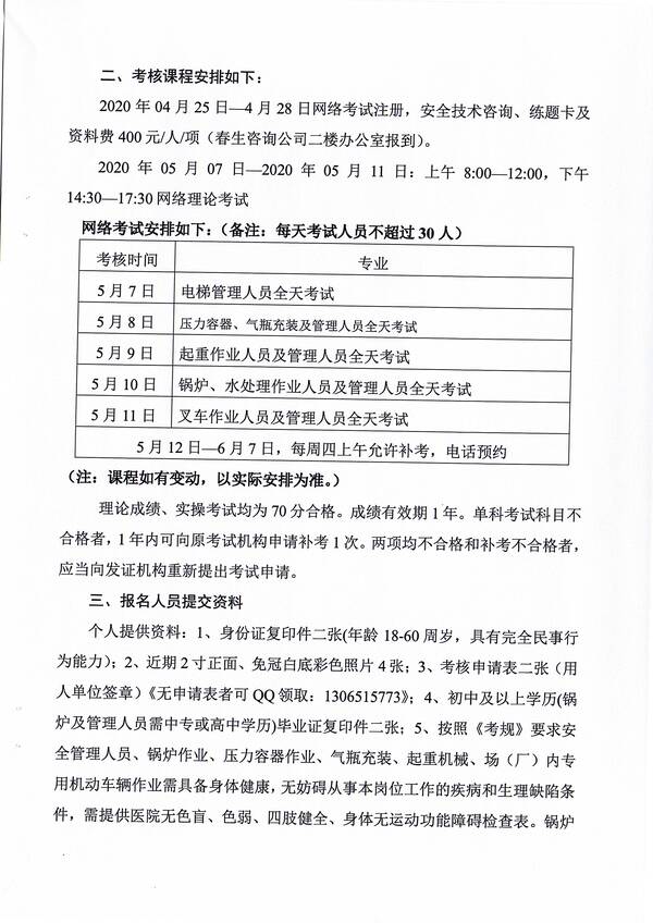 2020年第二期特種設(shè)備作業(yè)人員考核培訓(xùn)班的通知